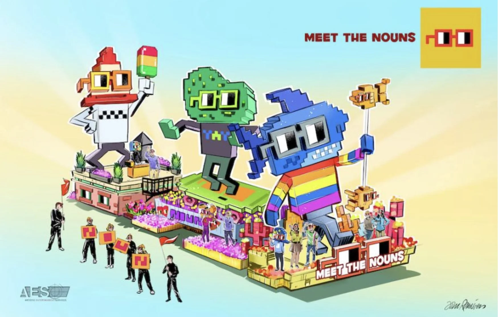 About Nouns: Nouns is a Web 3 art project that auctions one new art piece every day, forever. 100% of the proceeds from the auctions go into a pool which the Nouns art owners vote on how to spend. There is no “boss” or CEO of Nouns, it’s entirely community run and controlled, something that has been made possible because of new Web 3 technology. In this sense, as a community run organization, Nouns is a lot like Tournament of Roses. A passionate collection of fans all coming together to spread Nouns art and Nouns culture. The culture is about art, fun, public goods and experimentation.